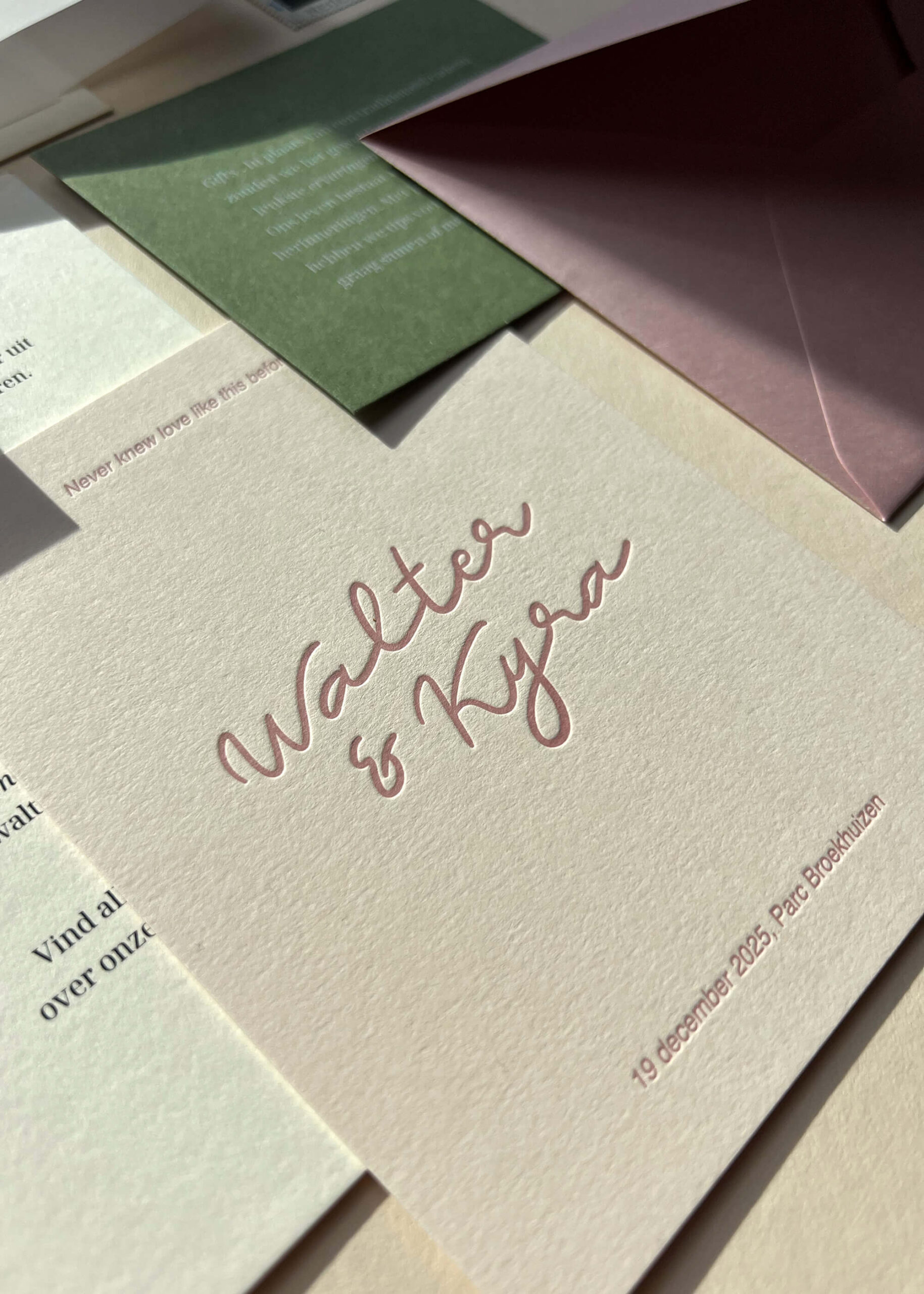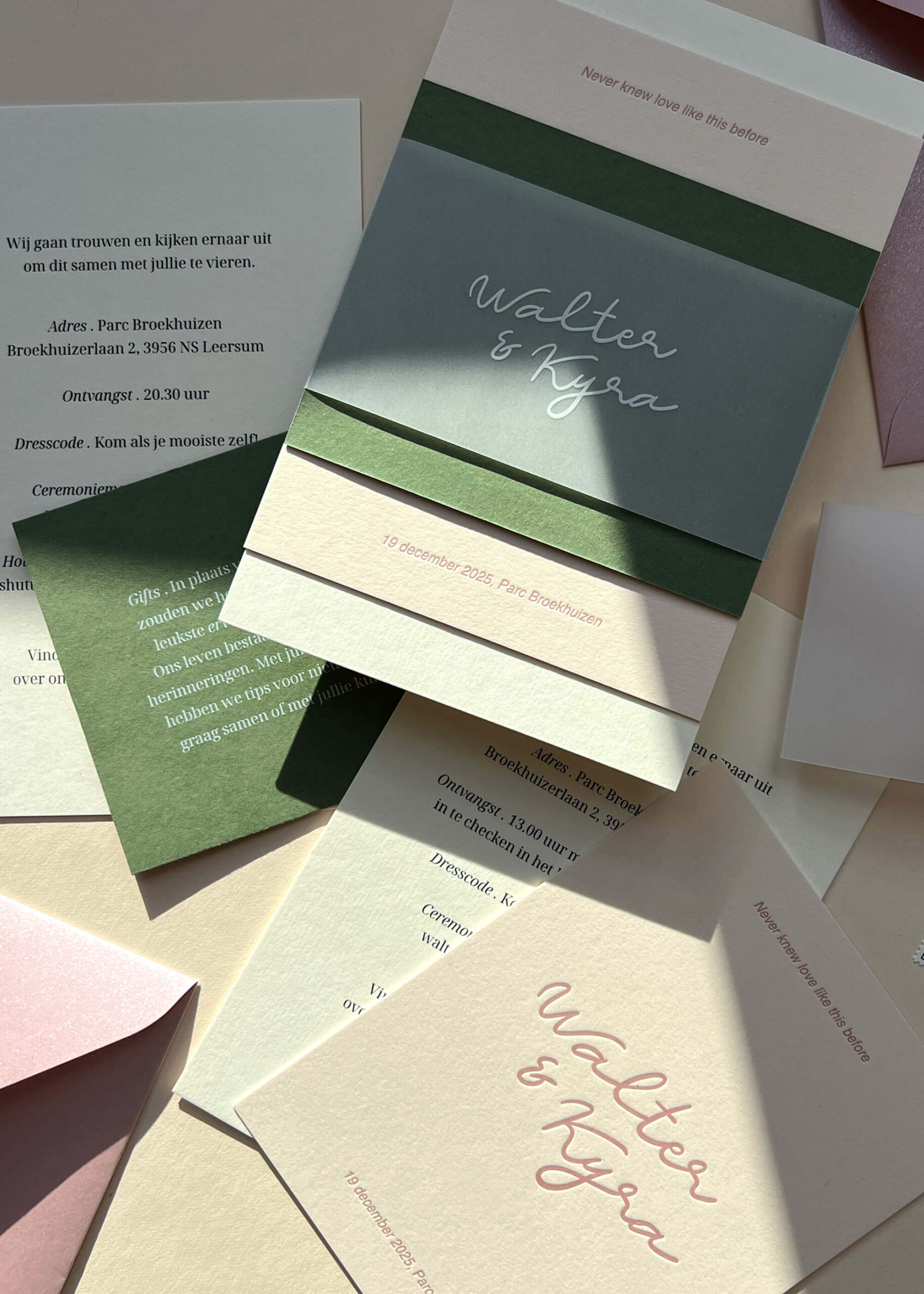 Walter & Kyra geven elkaar het jawoord op het prachtige Park Broekhuizen; een locatie die vraagt om stijlvolle en luxe wedding stationery.